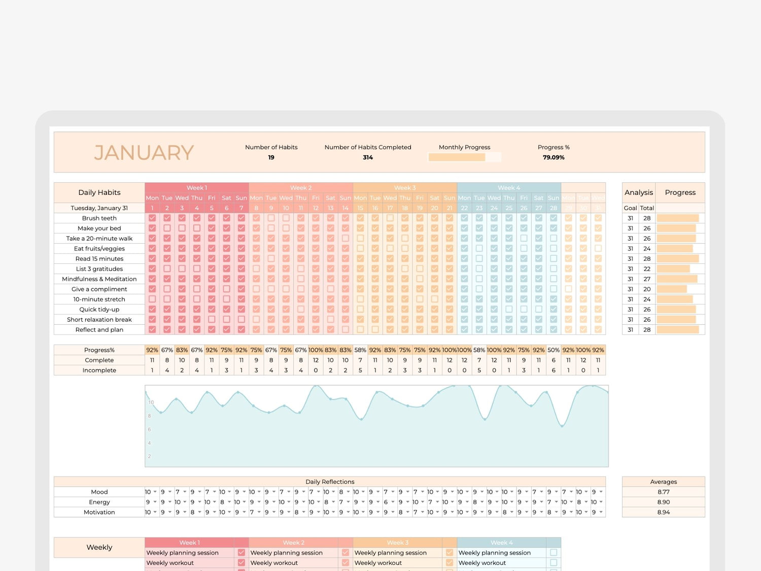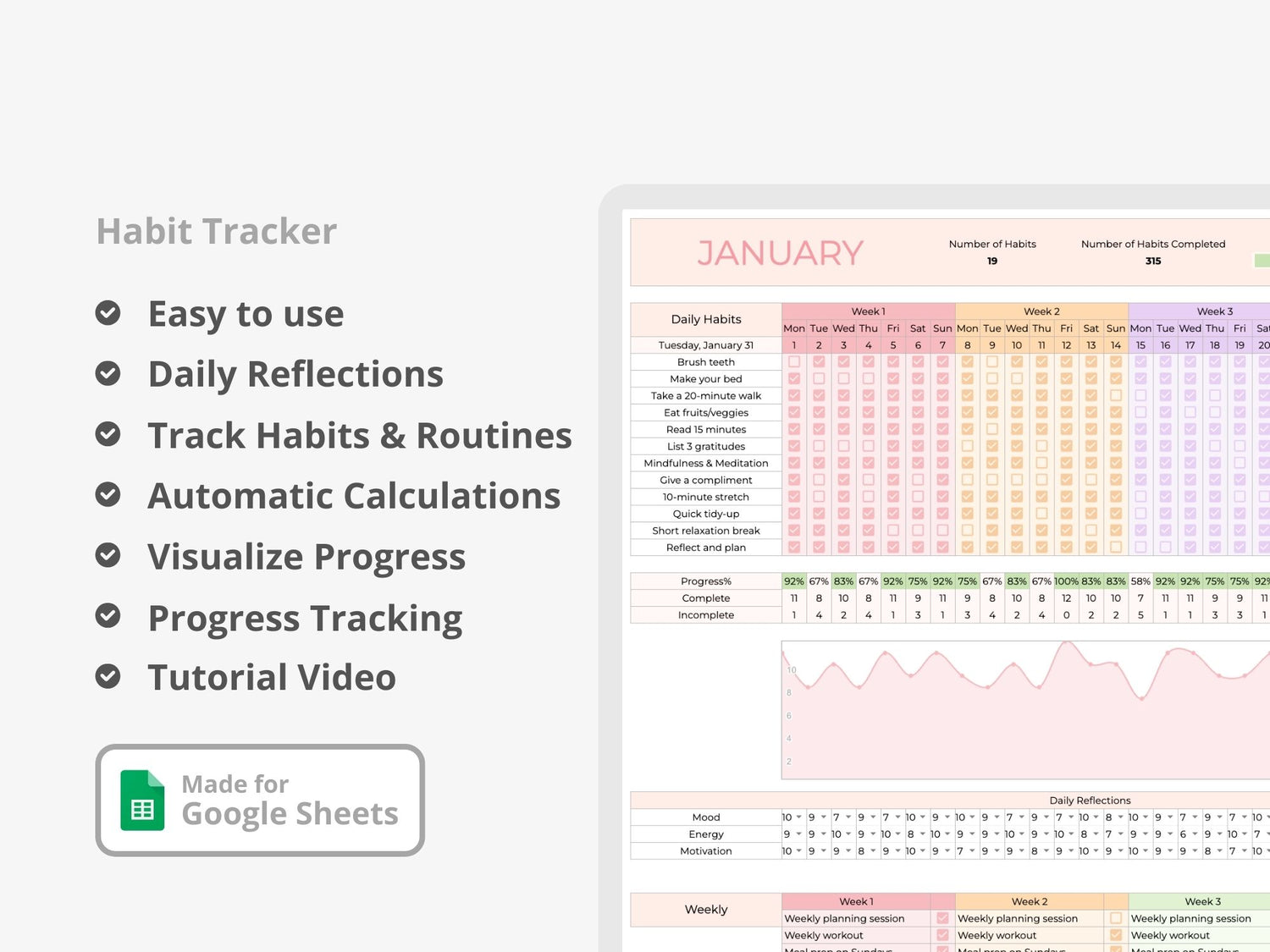 - Versatility and Customization: Whether it's fitness goals, reading, meditation, or any other habit, this tracker is perfect for any habit or goal you're working towards.