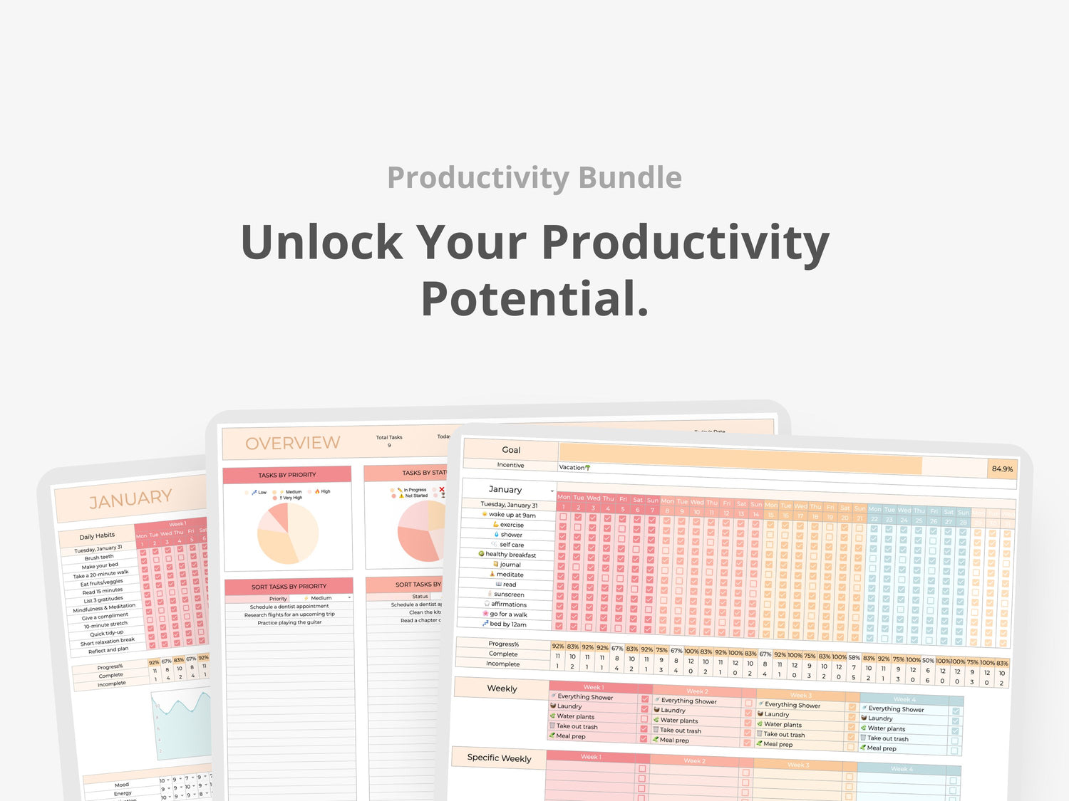 Enhance your productivity, organize your activities, and achieve your goals with the Productivity Bundle, the ultimate trio for maximizing your efficiency and success.
