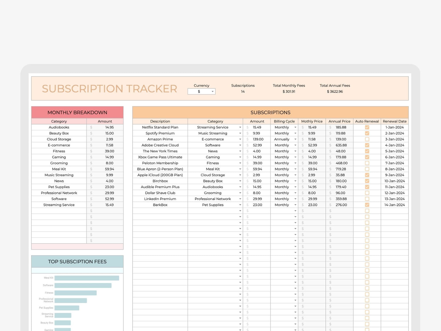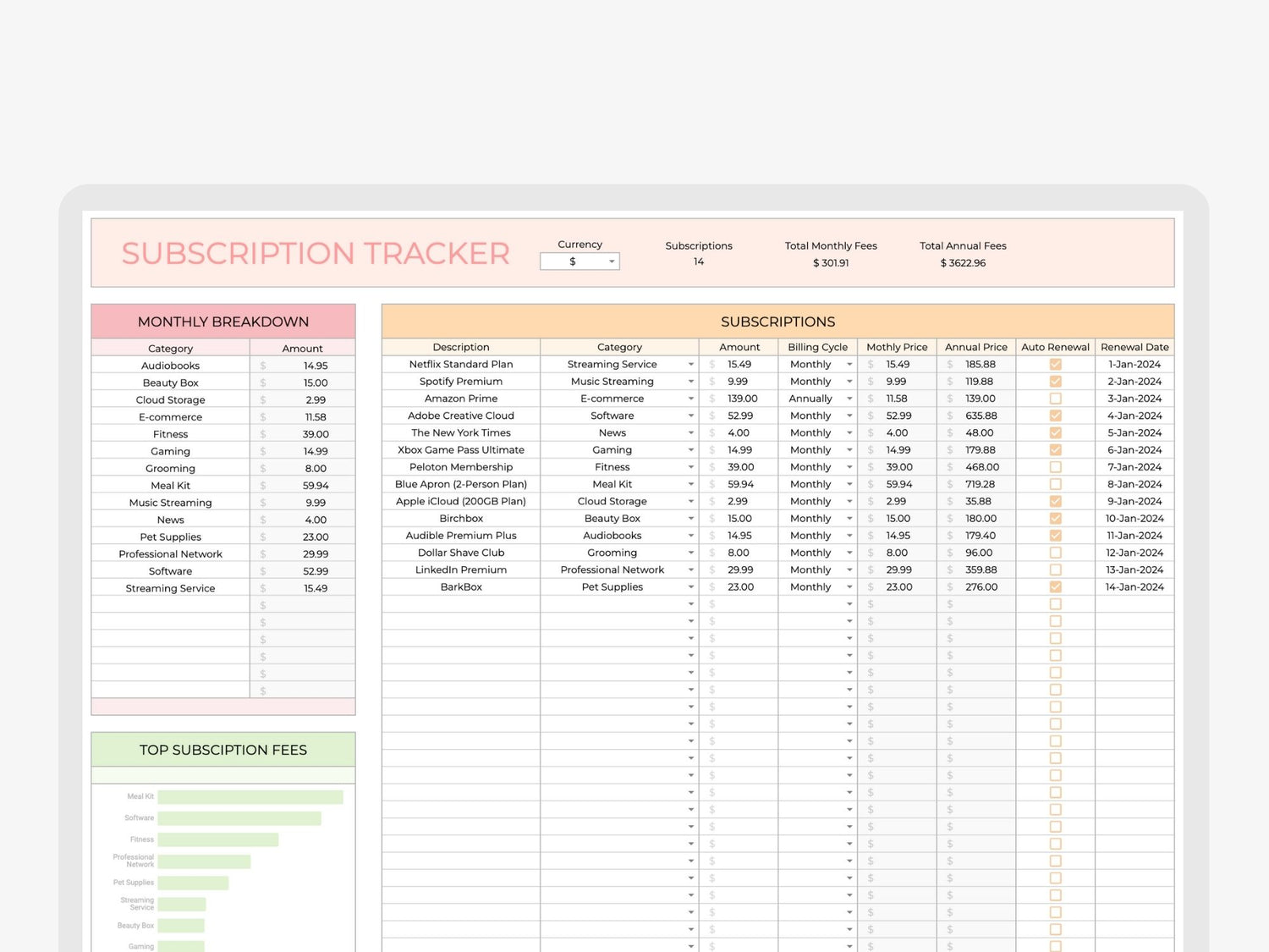This Subscription Tracker is more than just a tool; it's your personal assistant in managing and understanding your subscription expenses. Take control of your subscriptions and financial planning today with our user-friendly and efficient tracker.