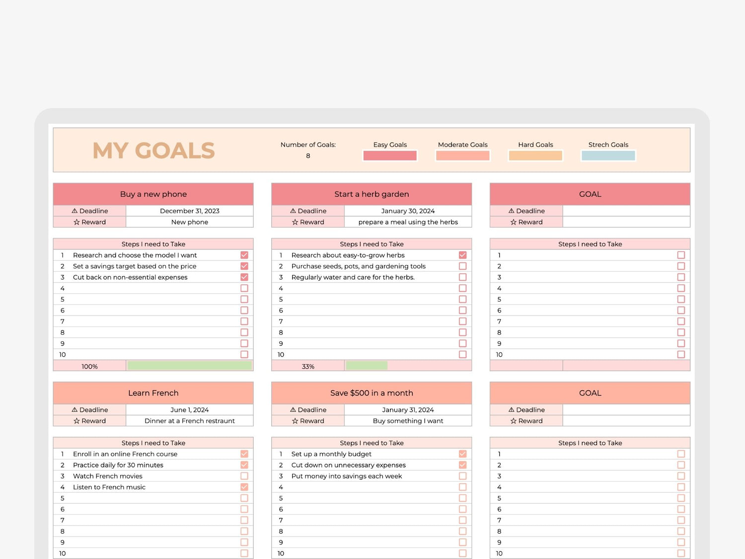 - Progress Tracking: As you complete each step, check them off and visually track your advancement towards your ultimate goal.